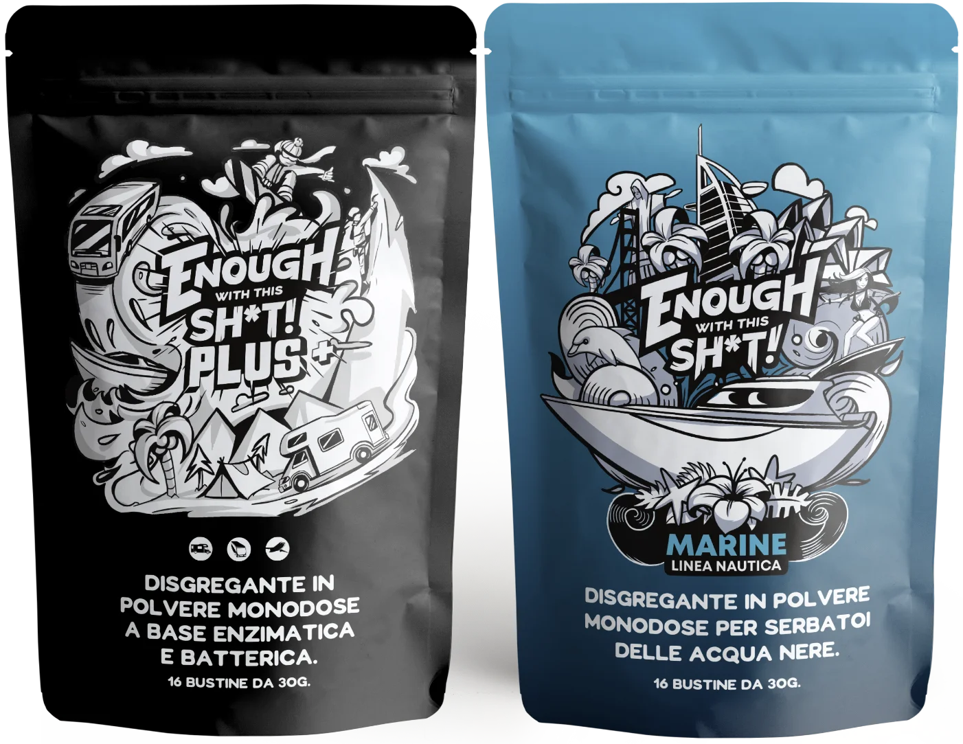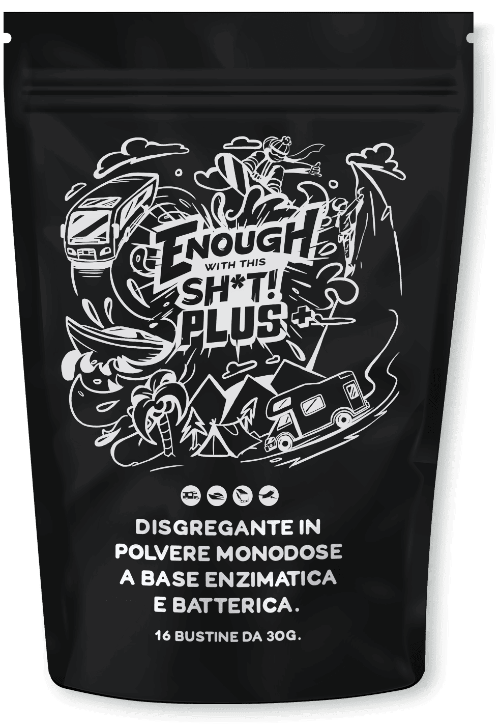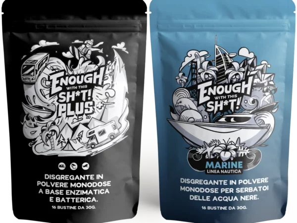 EWTS (acronimo di ENOUGH WITH THIS SH*T ) PLUS è un prodotto che promette di essere duro con gli odori sgradevoli ma gentile con l’ambiente. È un prodotto per rifiuti ecologico specificamente progettato per serbatoi di acque nere in camper e nautica. Il prodotto è a base di enzimi e batteri, che lavorano insieme per abbattere efficacemente rifiuti e tessuti nel serbatoio. Il prodotto è confezionato in bustine predosate, facili da usare e biodegradabili, eliminando così ogni probabilità di spreco o dosaggio errato.