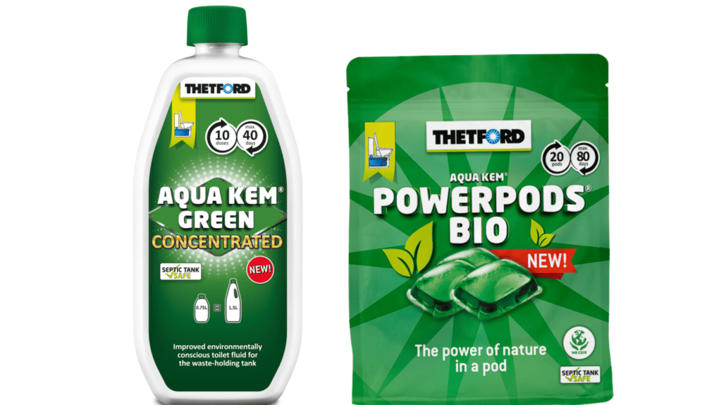 In particolare, i prodotti della gamma “Green and Bio” di Thetford sono una scelta sostenibile e sicura per i serbatoi settici. Aqua Kem® Green Concentrate e PowerPods® Bio sono entrambi formulati per offrire un eccellente controllo degli odori, pur essendo rispettosi dell’ambiente.