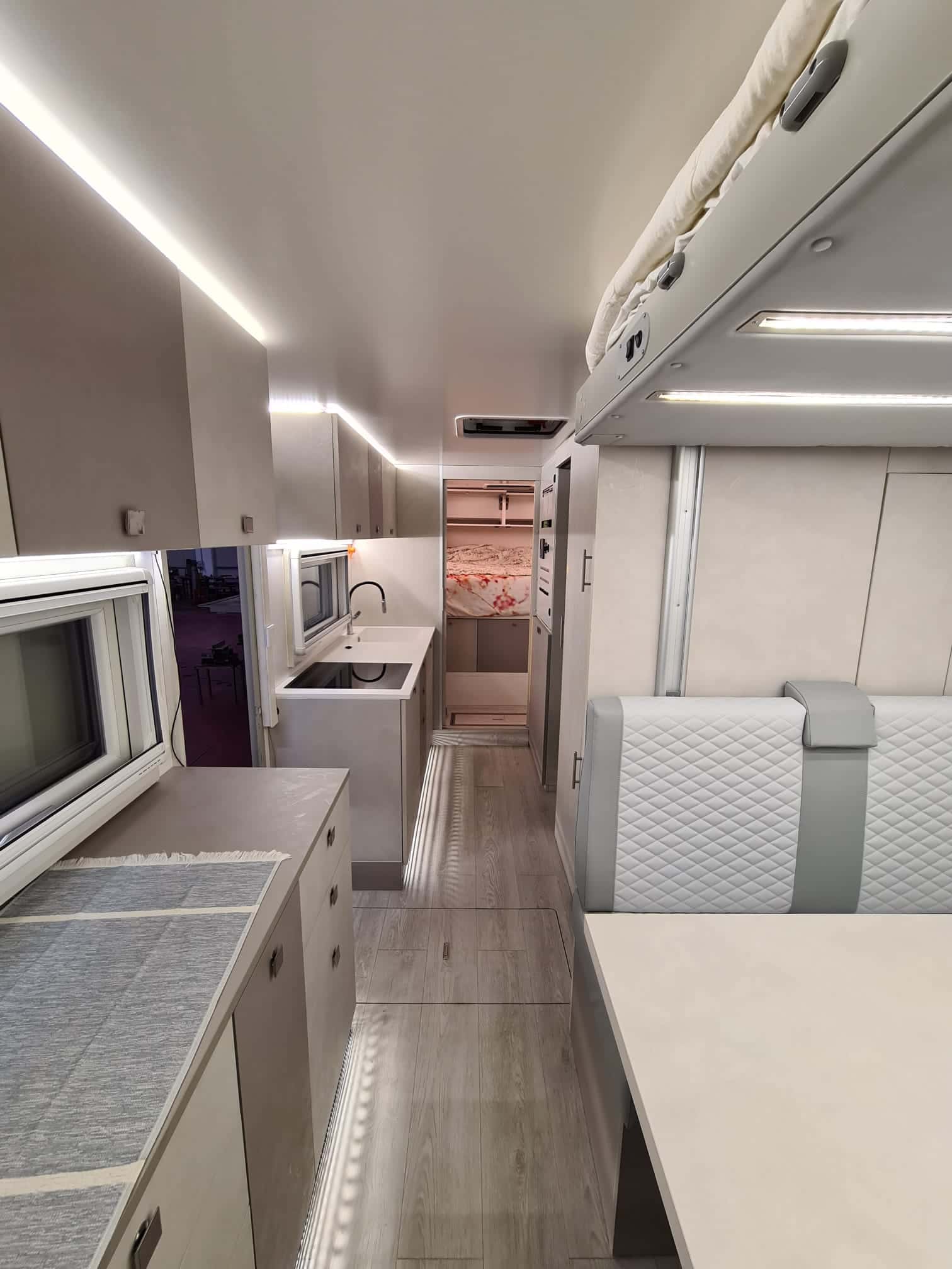 Questo permette ai viaggiatori di esplorare luoghi remoti senza dover costantemente cercare rifornimenti. Anche a livello energetico vengono offerte capacità ed autonomia di tutto rispetto. Con un sistema di accumulo energetico Victron da 1380Ah e un impianto fotovoltaico da 1400W, è infatti in grado di alimentare tutti i dispositivi e le necessità energetiche per un lungo periodo.