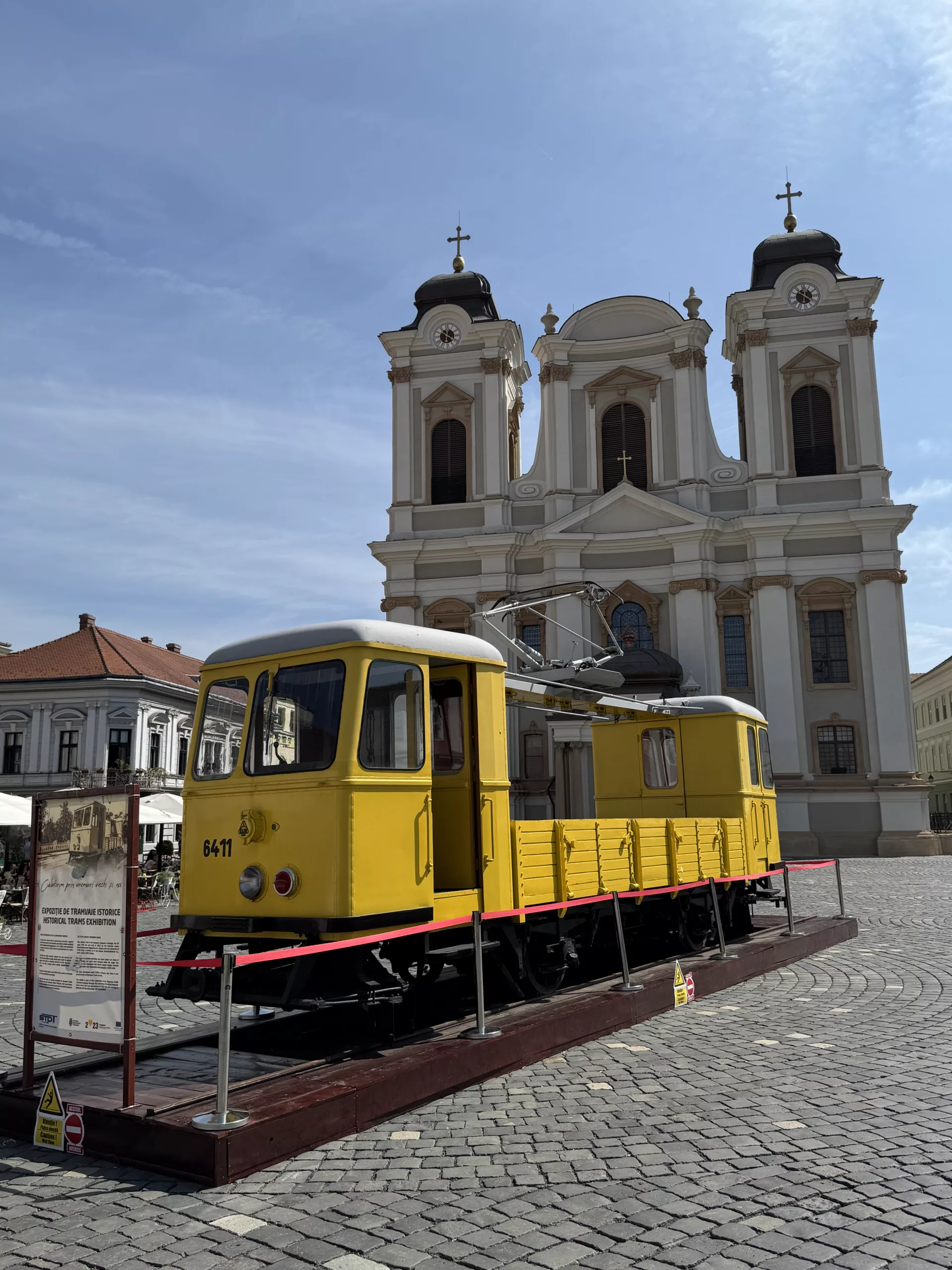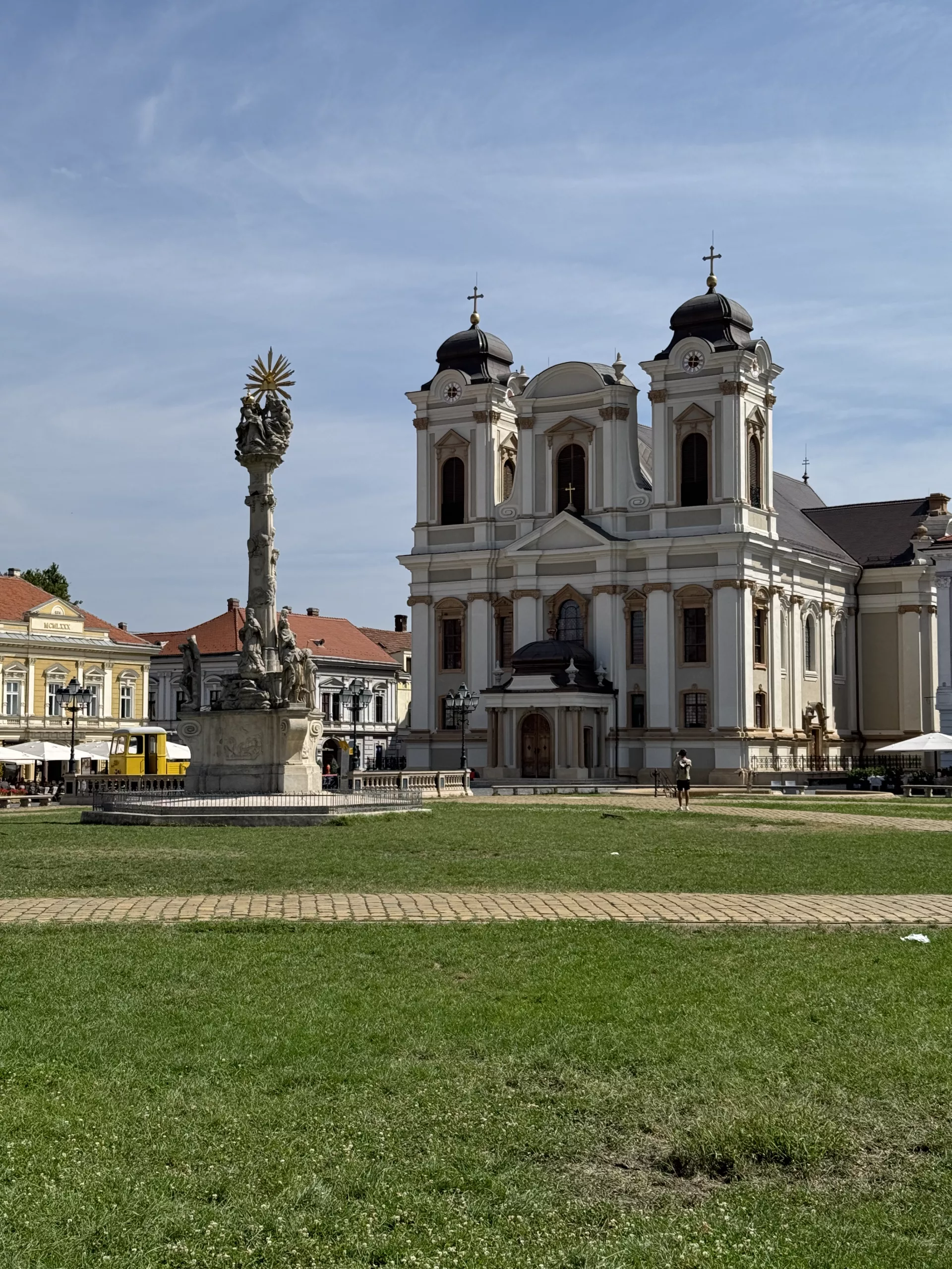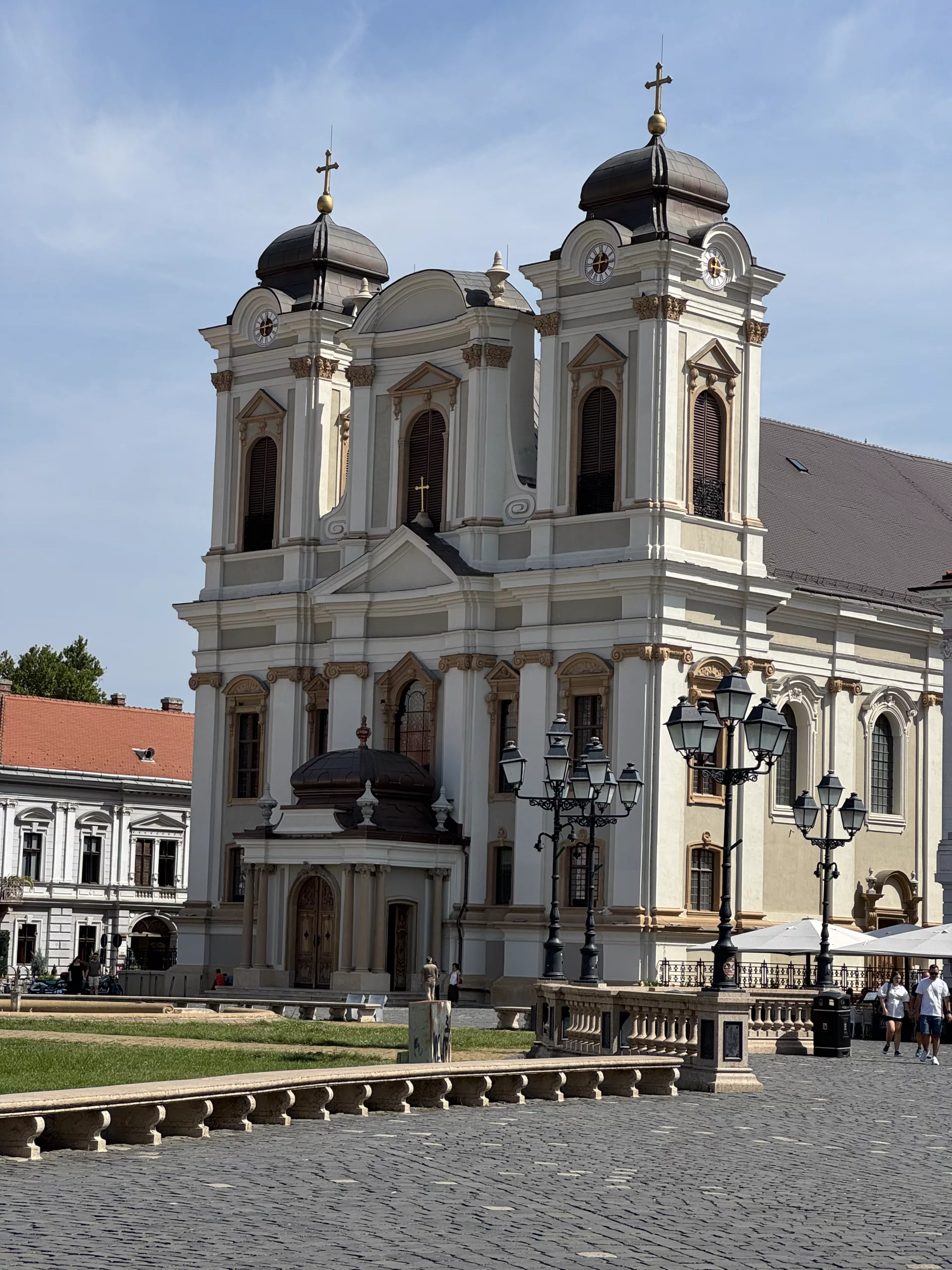 Timișoara è stata la nostra prima tappa, e già al primo sguardo ci ha spiazzati. Ci aspettavamo una città di transito, invece ci siamo ritrovati in una piccola Vienna dai colori pastello. I palazzi del centro storico sono eleganti, mitteleuropei, e le piazze ampie, ordinate, vive. Piazza Unirii, con le sue facciate barocche e la cattedrale cattolica, ci ha accolto con un’atmosfera raffinata ma non rigida, piena di caffè, studenti, biciclette.