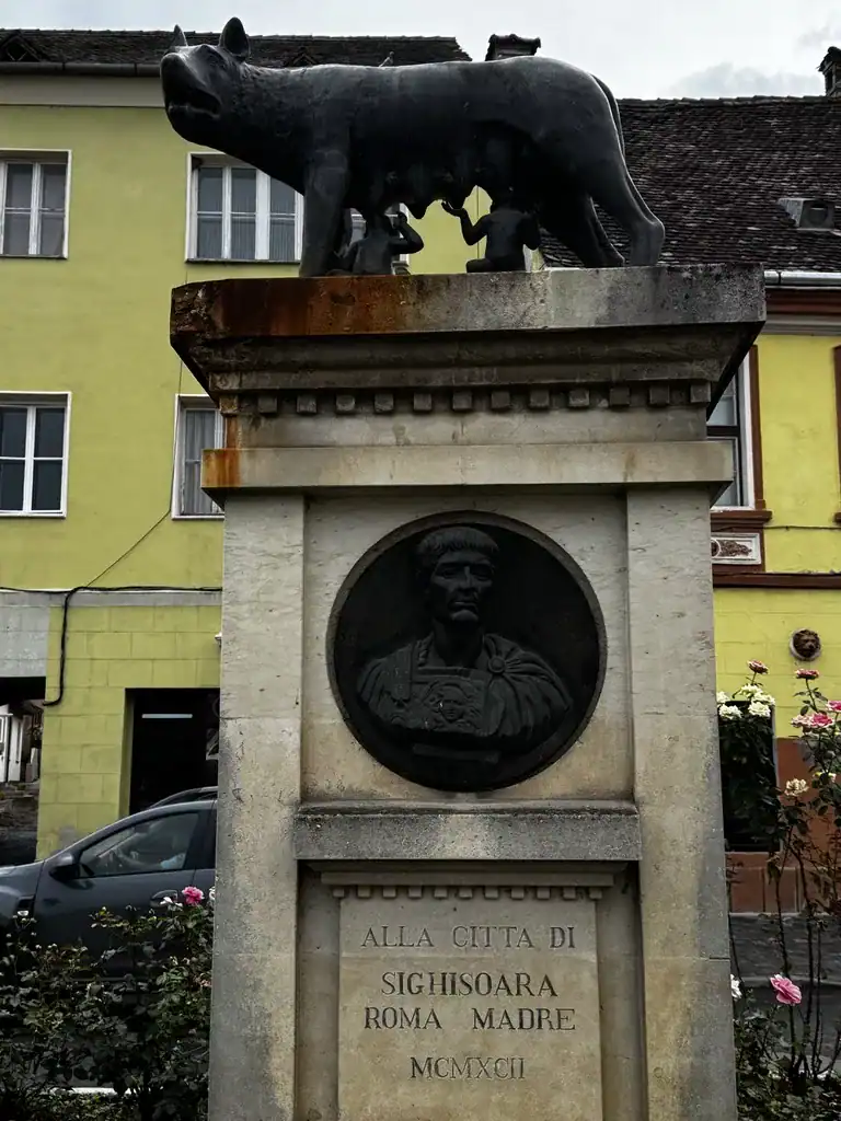 Tra le architetture e i simboli storici, abbiamo ritrovato anche la statua della lupa capitolina, che avevamo già incontrato a Timișoara. Vederla anche qui, tra le mura di una cittadella sassone, ci ha fatto sorridere: un richiamo alla latinità che unisce, anche nei luoghi più impensati. Come se Roma, in un certo senso, non fosse mai del tutto lontana.