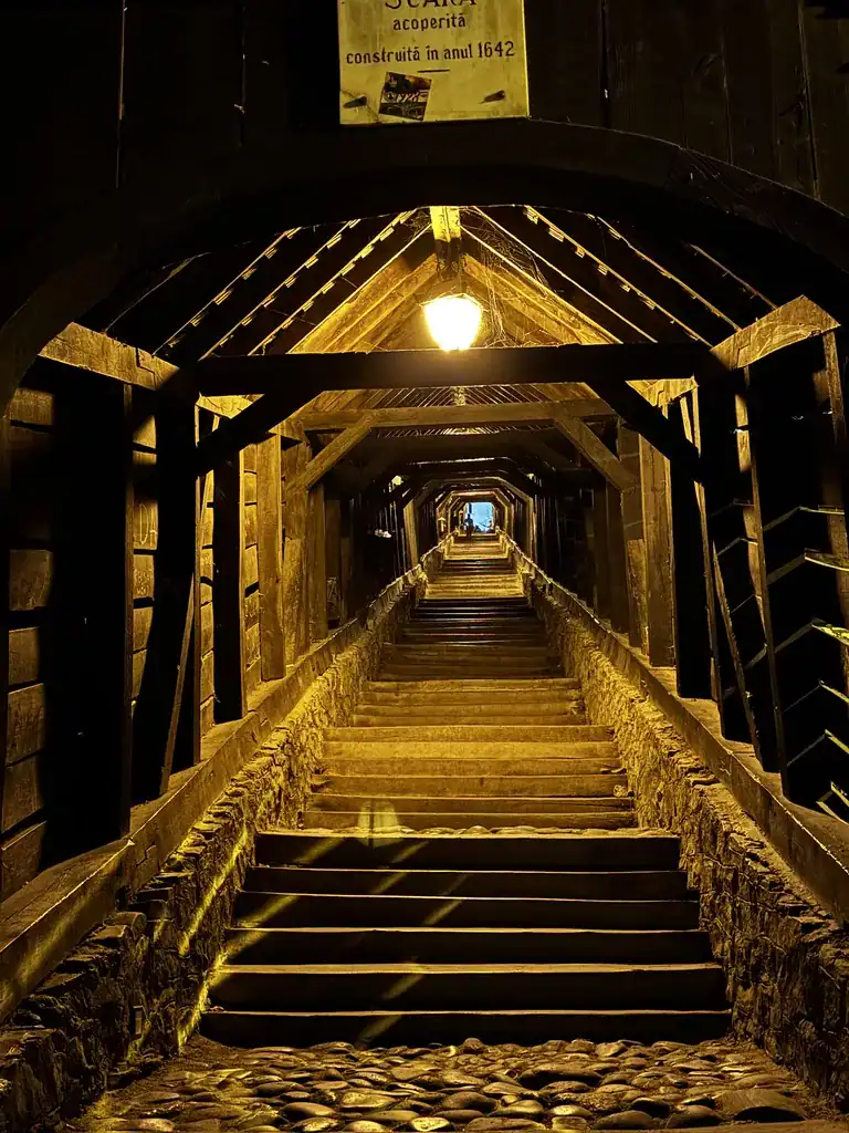 Durante la visita diurna, tra una salita e una torre, ci siamo concessi anche un piccolo peccato di gola. In una bancarella appena fuori dalle mura abbiamo assaggiato uno street food tipico, che da lontano sembrava un semplice fritto ma che al primo morso ci ha conquistati: lángoș cu cașcaval — o qualcosa di simile, perché pronunciarlo correttamente resta tuttora un’impresa.