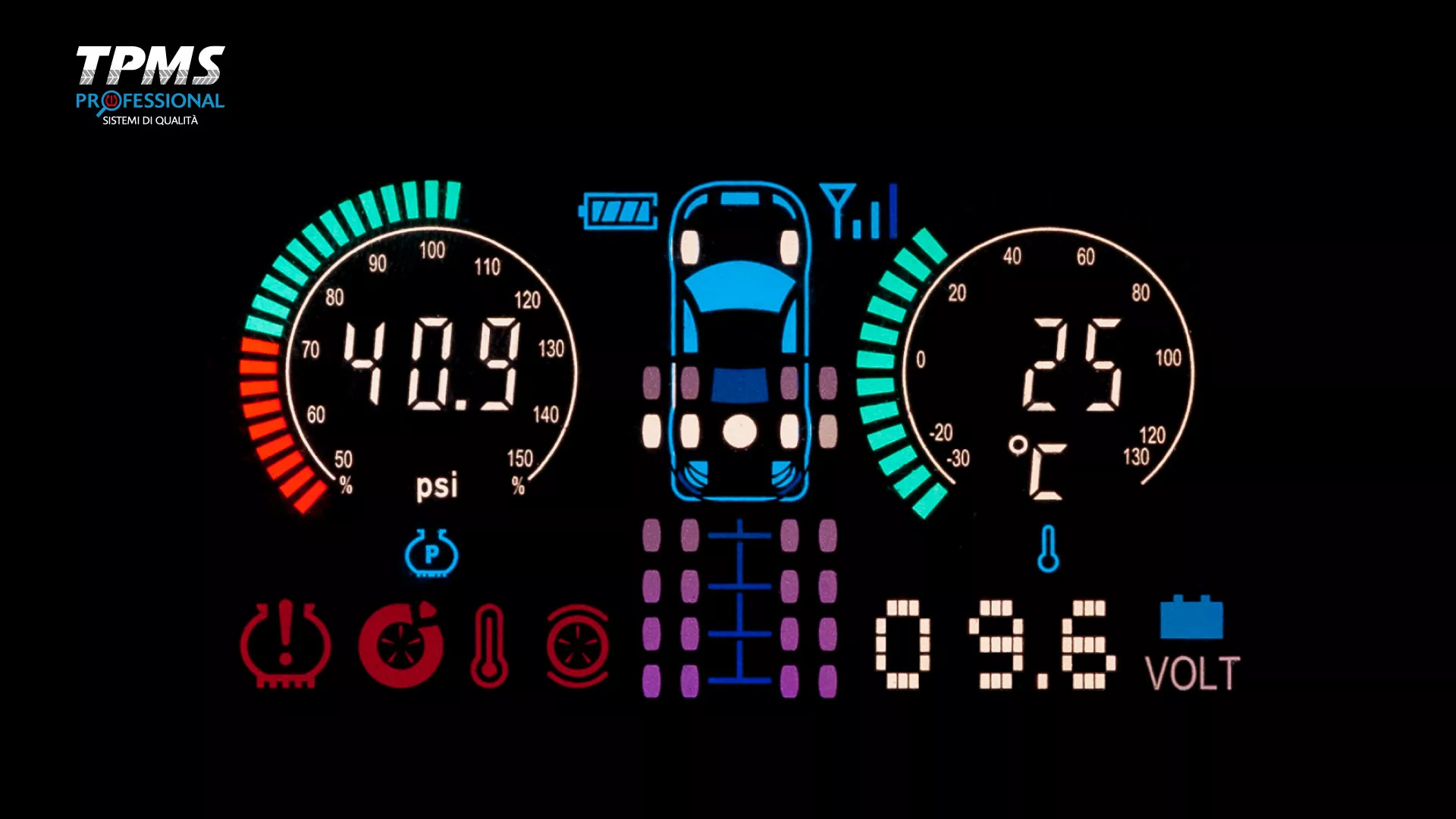 Il TPMS, acronimo di Tyre Pressure Monitoring System, è un sistema che serve a monitorare in tempo reale la pressione degli pneumatici. Ogni ruota è dotata di un piccolo sensore, solitamente posizionato all’interno del cerchio o direttamente sul tappo della valvola, che rileva la pressione (e in molti casi anche la temperatura) e invia i dati a un display in cabina.