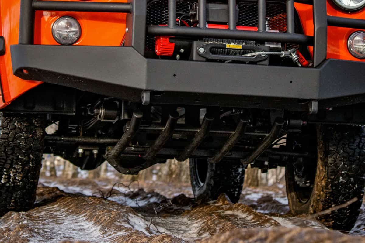 Questa versione è verniciato con vernice protettiva arancione ed è dotato sin dalla nascita di robuste protezioni che lo rendono indistruttibile e inarrestabile anche nei percorsi più impegnativi. E’ infatti dotato di paraurti rinforzati, verricello e protezione scatola sterzo e motore.
